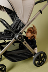 - Компактное складывание. Шасси складывается вместе с прогулочным блоком. Боковой замок-фиксатор гарантирует, что коляска не раскроется при переноске или погрузке в багажник.