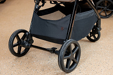 3. Безопасность и комфорт: гелиевые колеса с добавлением резины обеспечивают лучшую амортизацию и лёгкую манёвренность на любой поверхности. Светоотражающие элементы на подножке и чехле улучшают видимость в темное время суток. Вместительная корзина оснащена большой сумкой-шоппером , что облегчает процесс покупок. Дополнительным удобством для родителей являются подстаканник и эластичный ремешок для переноски коляски в сложенном виде на плече.