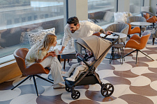 Необслуживаемые колёса с улучшенным протектором — обеспечивают надёжное сцепление с дорогой и плавный ход на любых покрытиях, не требуют подкачки и дополнительного ухода. Дополнительный комфорт при ежедневных прогулках создаёт эффективная амортизация, сглаживающая неровности дороги.