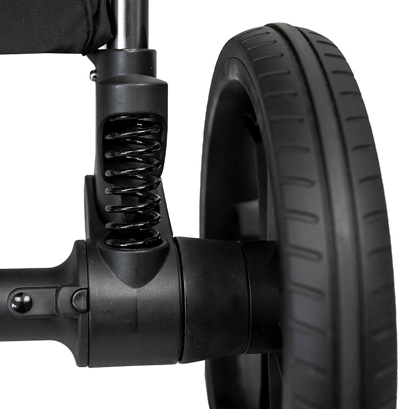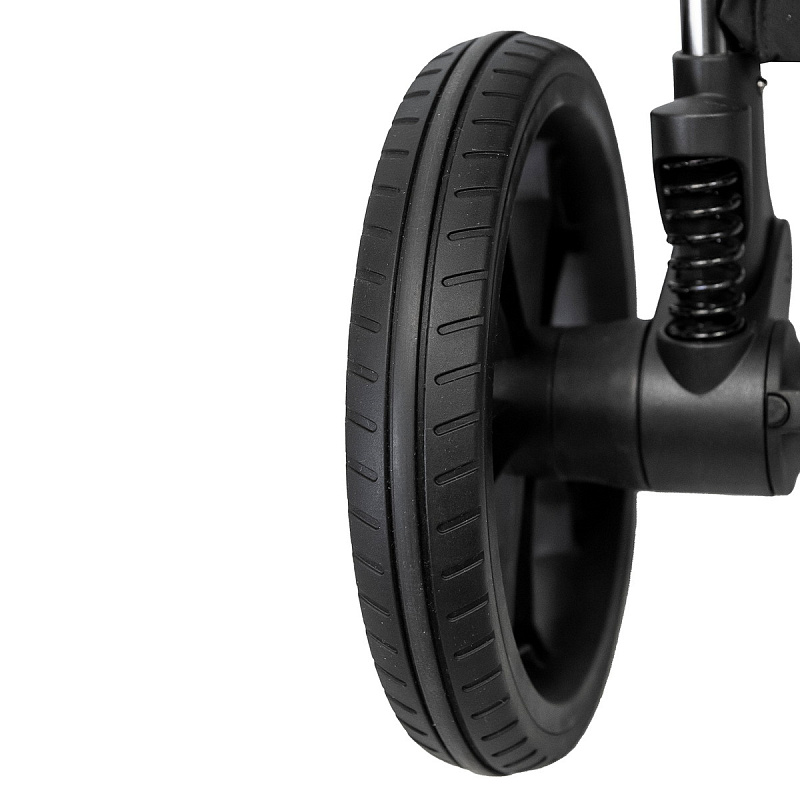 Необслуживаемые колёса с улучшенным протектором — обеспечивают надёжное сцепление с дорогой и плавный ход на любых покрытиях, не требуют подкачки и дополнительного ухода. Дополнительный комфорт при ежедневных прогулках создаёт эффективная амортизация, сглаживающая неровности дороги.