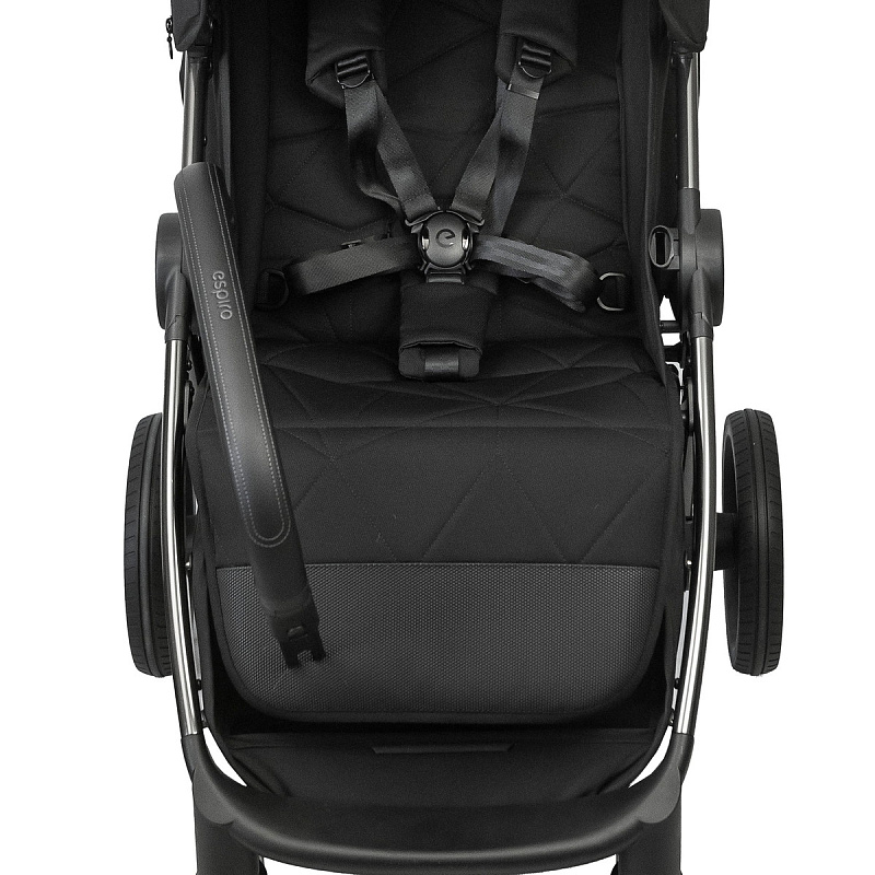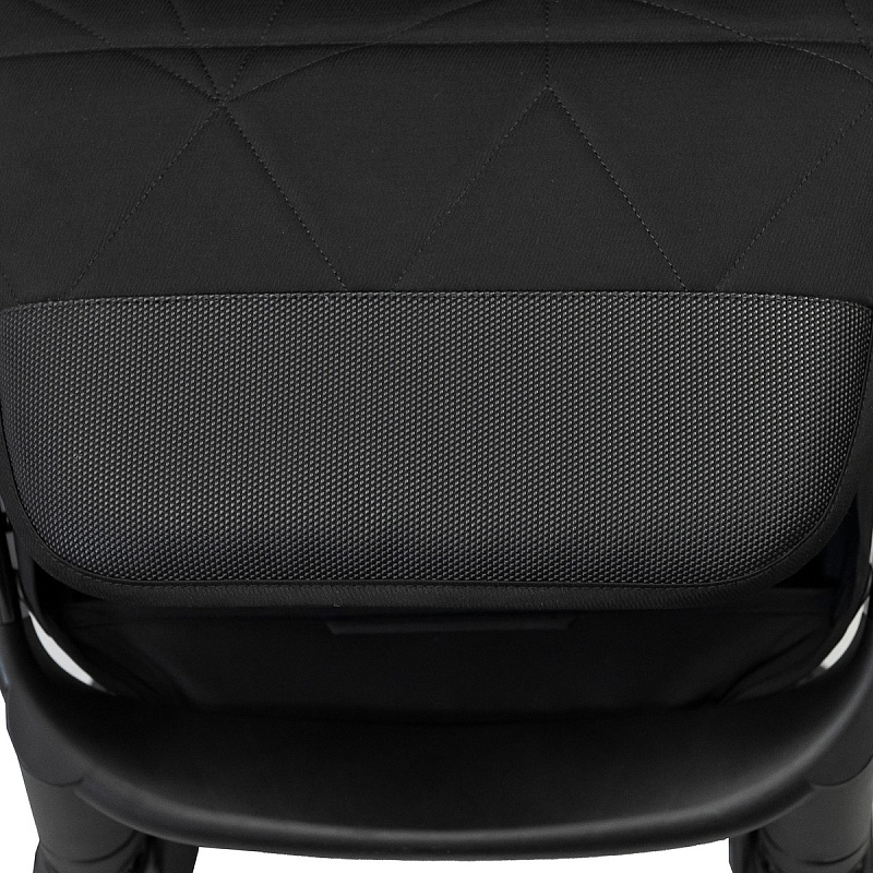 Сиденье в этой модели — это сочетание стиля и уюта. Оно украшено аккуратной геометрической прошивкой, которая не только подчеркивает современный характер коляски, но и помогает ткани сохранять форму. Внутри находится мягкий двусторонний вкладыш (зима/лето), которую можно переворачивать. Она делает посадку более глубокой и комфортной для малыша.