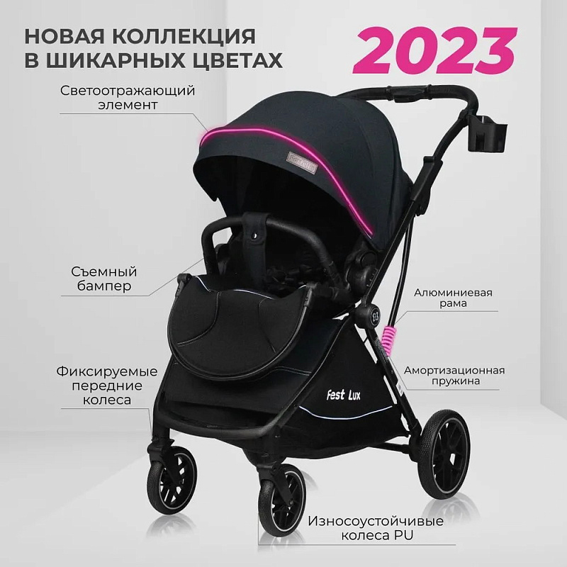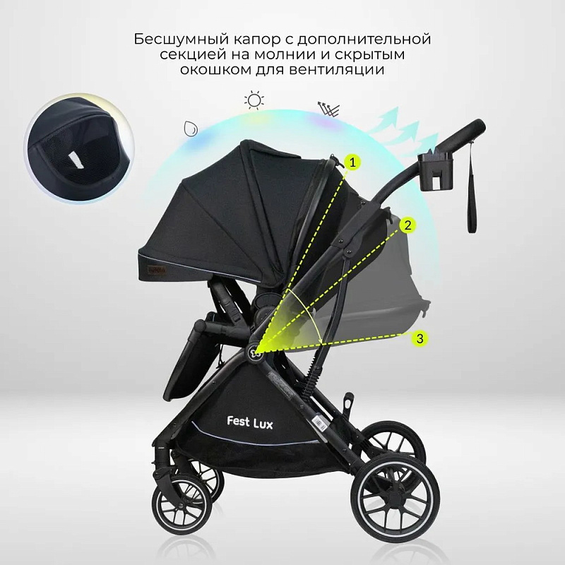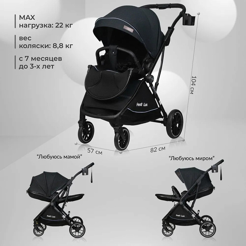 Детская прогулочная коляска Farfello Fest Lux Угольно-черный/Carbon black