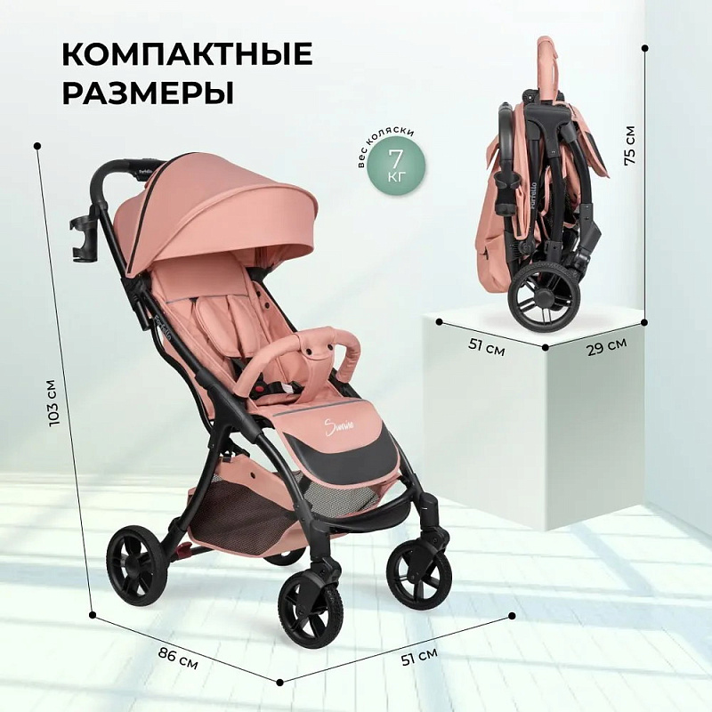 Система быстрого складывания одной рукой! Габариты коляски в сложенном состоянии позволяют взять её с собой в транспорт или на борт самолета.