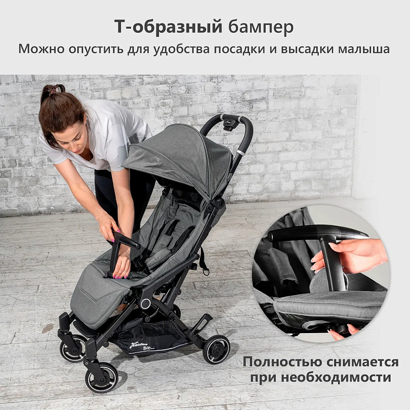Лаконичный дизайн и технические характеристики делают детскую прогулочную коляску Hartan Bit идеальным вариантом для города, в котором неспешные прогулки по парку сменяются шоппингом или другими мероприятиями. Рекомендуется для детей от 7 месяцев. Складывается и раскладывается одной рукой, что очень удобно, если в другой мама держит непоседу. В сложенном состоянии занимает минимум места - комфортна для хранения и транспортировки. Входящая в комплектацию сумка позволяет с комфортом переносить коляску на плече, не пачкая при этом одежду. Оснащена регулируемой спинкой, плавно опускающейся на ремешках вплоть до горизонтального положения - кроха может с комфортом отдохнуть в процессе прогулки. Регулируемые ремни с мягкими накладками и оригинальный съемный бампер, совмещенный с разделителем для ножек, обеспечивают безопасность непоседы - не выскользнет из сидения в процессе прогулки. Легко складывающийся одной рукой капюшон из влагонепроницаемой ткани с защитой от ультрафиолета надежно оберегает кроху от непогоды и палящих солнечных лучей - комфорт в любую погоду.