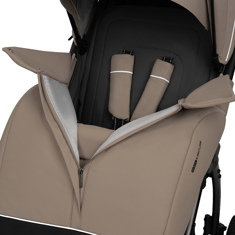 Капюшон регулируется и дополнен козырьком на молнии, смотровым окошком с москитной сеткой для наблюдения за малышом, а также большим вентиляционным окном с москитной сеткой. Утепленные боковины и накидка на ножки с удобным доступом на молнии делают модель подходящей для прогулок в любую погоду.