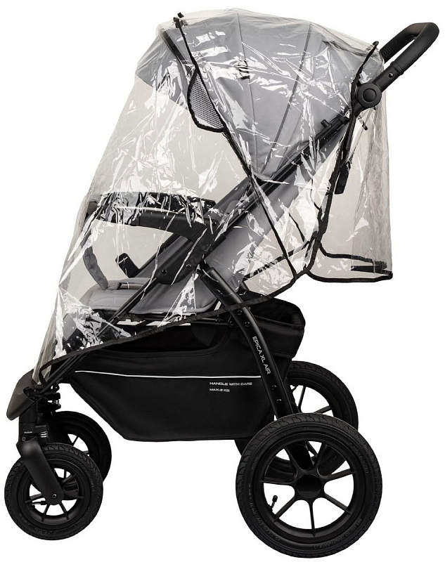 Большой капюшон с козырьком защищает малыша от солнца, ветра и осадков.