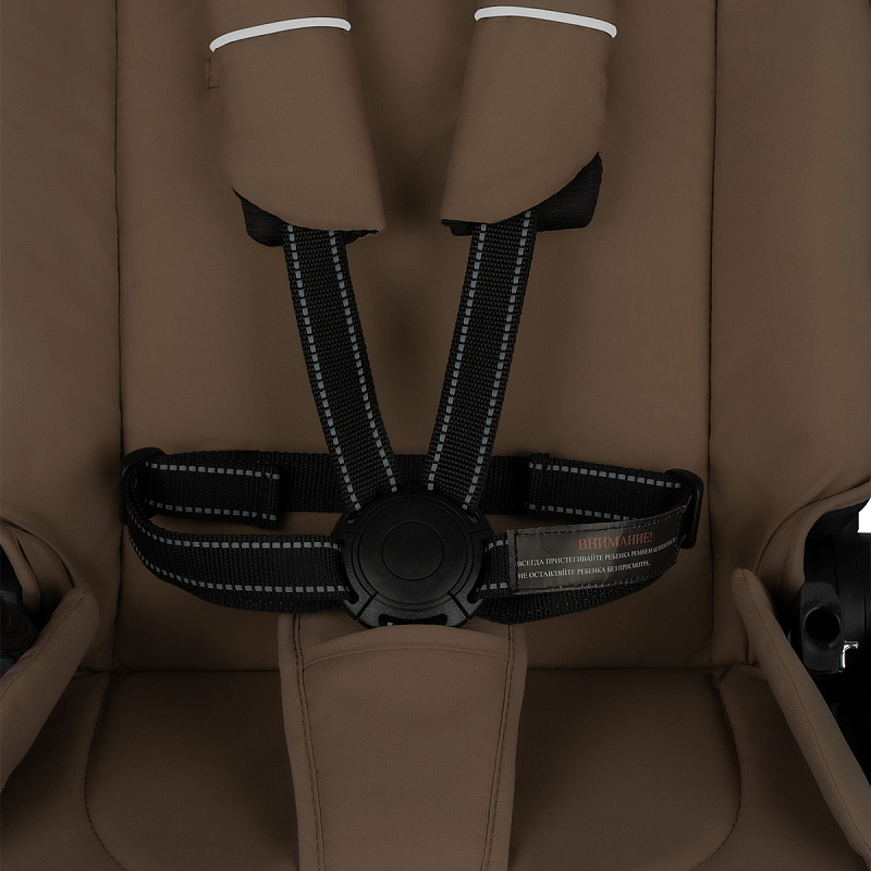Покрытие подножки из экокожи не только придает коляске элегантный вид, но и облегчает уход за ней. Регулируемая подножка позволяет адаптировать коляску к росту ребенка, обеспечивая правильную поддержку ног. Ремни безопасности с 3 положениями по высоте и 5-точечной фиксацией надежно удерживают ребенка в коляске, предотвращая выпадение.