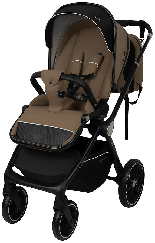 Коляска оснащена 4 полиуретановыми колесами, которые обеспечивают плавный ход и хорошую проходимость на различных поверхностях. Большая корзина для багажа позволяет взять с собой все необходимое для прогулки. В комплекте с коляской идут накидка на ноги, сумка для мамы в виде рюкзака, москитная сетка и подстаканник, что делает ее идеальным выбором для современных родителей.