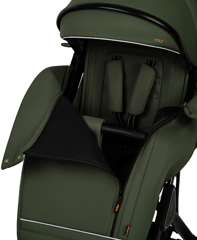 Капюшон регулируется в четырех положениях и дополнен секцией на молнии, вентиляционным окном и смотровым окошком с москитной сеткой на магнитах. Для прогулок в прохладную погоду предусмотрена накидка с удобным доступом к ребенку на молнии. Все текстильные элементы продуманы для комфортного использования в любое время года.