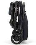 Шасси складывается вместе с прогулочным блоком тканью внутрь до ультра компактного размера — габариты соответствуют нормам ручной клади большинства авиакомпаний. В сложенном виде стоит без опоры, не пачкая ручку.