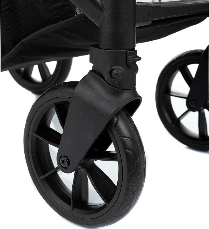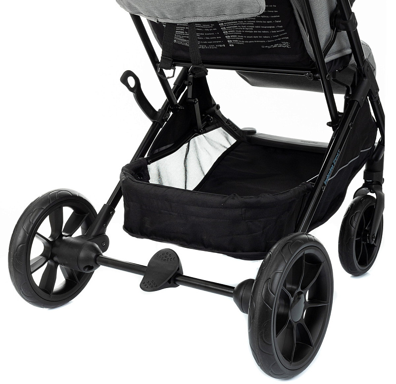 Гарантирует комфортные прогулки по местности с любым рельефом благодаря большим колесам с шариковыми подшипниками и амортизации на всех четырех колесах. Диаметр передних колес- 175 мм, диаметр задних колес- 240 мм.