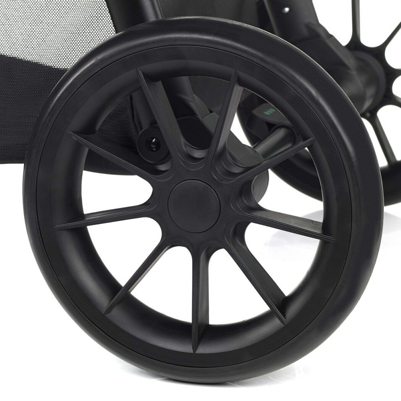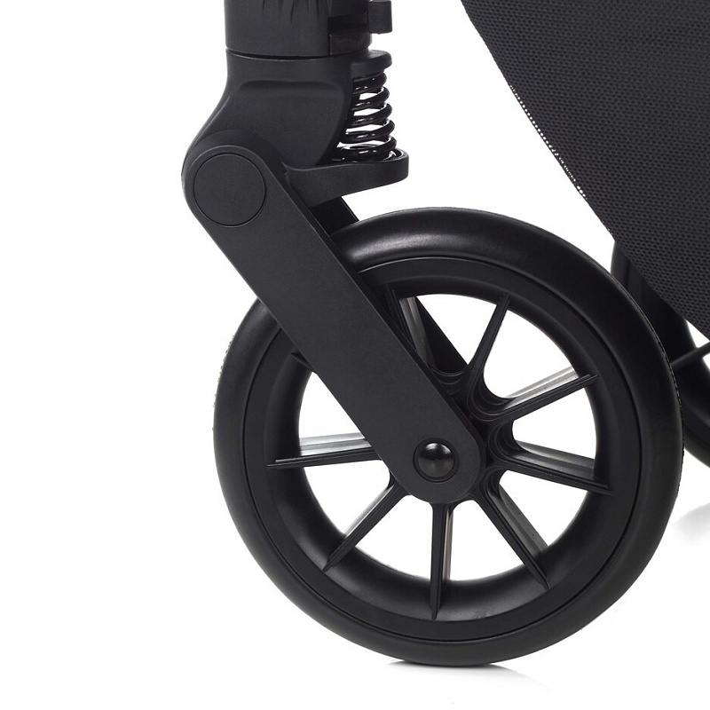 - Съемные передние и задние колеса. Передние колеса вращаются на 360°. Пружинная подвеска всех колес.