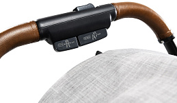 Имеет съемный бампер, который обеспечивает дополнительную безопасность ребенка. Большой капюшон с дополнительным козырьком защищает ребенка от солнца и ветра. Капюшон изготовлен из прочного водоотталкивающего материала с защитой от ультрафиолета.