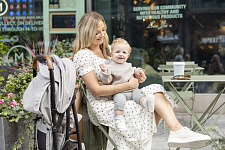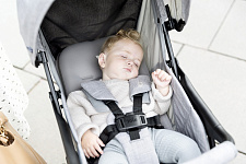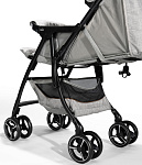 Легко складывается книжкой, что удобно для транспортировки и хранения. Спинка коляски раскладывается горизонтально, что позволяет использовать ее для сна ребенка. Для обеспечения комфорта в жаркую погоду предусмотрена сетчатая вставка для вентиляции спинки.