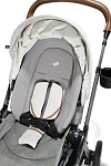 Прогулочная коляска изготовлена из качественных и безопасных материалов, не имеет острых углов и соответствует европейским стандартам безопасности. Оснащена колесами из вспененного полимера, защитным бампером, раскладывающимся до горизонтального положения сидением.