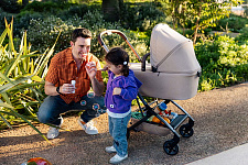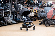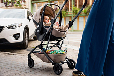 - На шасси можно установить люльку для новорожденного (приобретается отдельно). Она компактно складывается вместе с шасси коляски