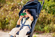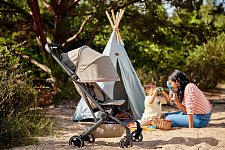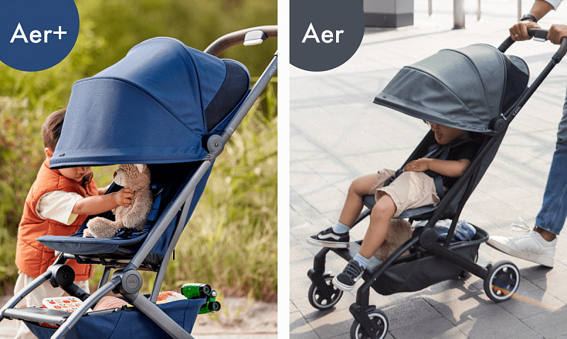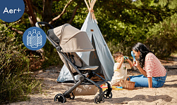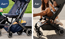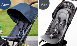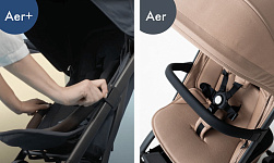Эргономичное просторное сиденье, длинная раскладывающаяся спинка, большой солнцезащитный капюшон с вентиляцией, амортизация всех колес и стильный дизайн делают Aer+ идеальной для комфортных прогулок и захватывающих путешествий с ребенком!