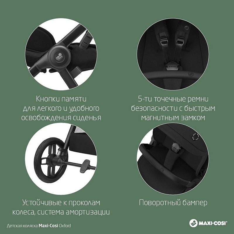 Maxi-Cosi Коляска детская прогулочная Oxford Essential сочетает в себе стиль и функциональность. Благодаря системе путешествий Oxford 3-в-1 ваш ребенок может передвигаться с комфортом с первого дня до возраста 4 лет (22 кг). Мы знаем, как быстро они растут, но ваша система путешествий в Oxford адаптируется и растет вместе с ними. Когда ваш ребенок только что родился, вы можете использовать горизонтальное положение или соединить коляску с автокреслом или люлькой Maxi-Cosi. Когда они подрастут, удобные в использовании ремни безопасности с магнитным замком, поворотным бампером и высокой спинкой обеспечат им поддержку и комфорт по мере их роста.