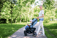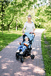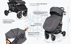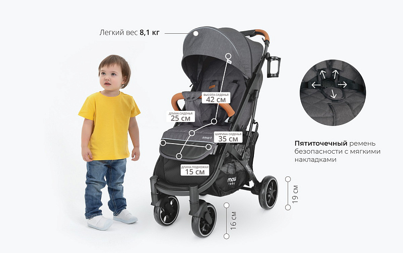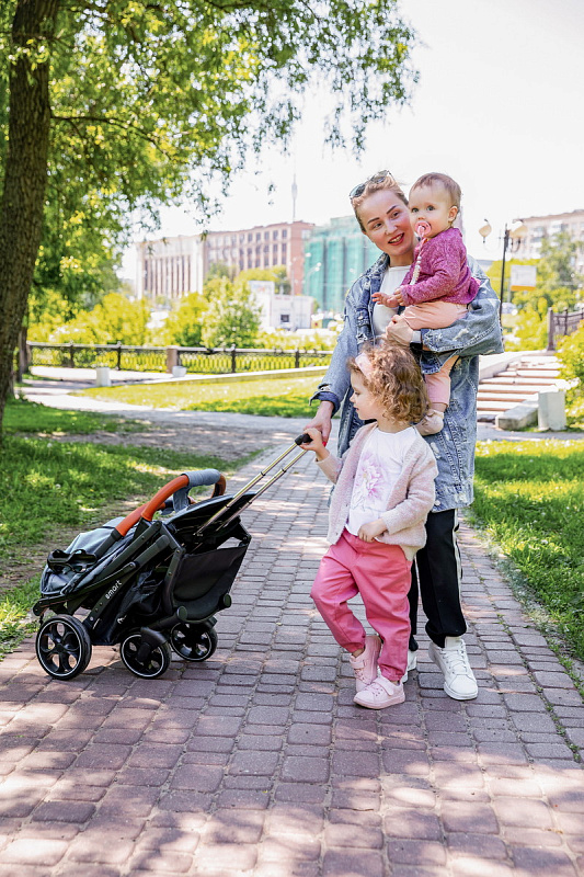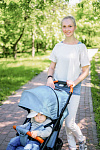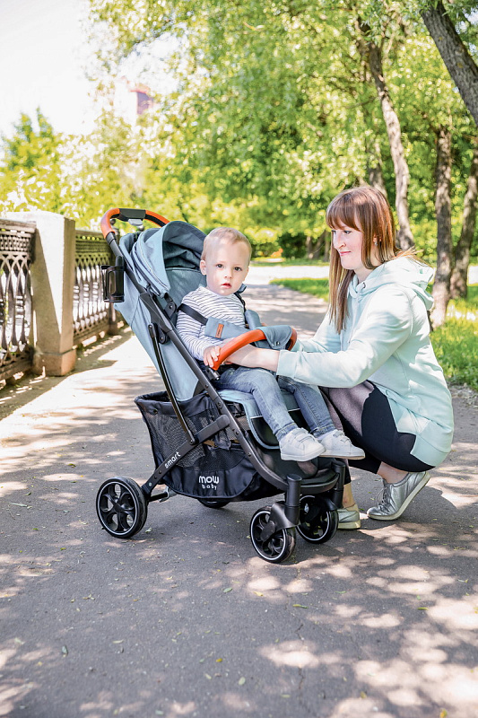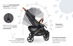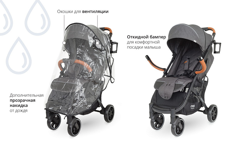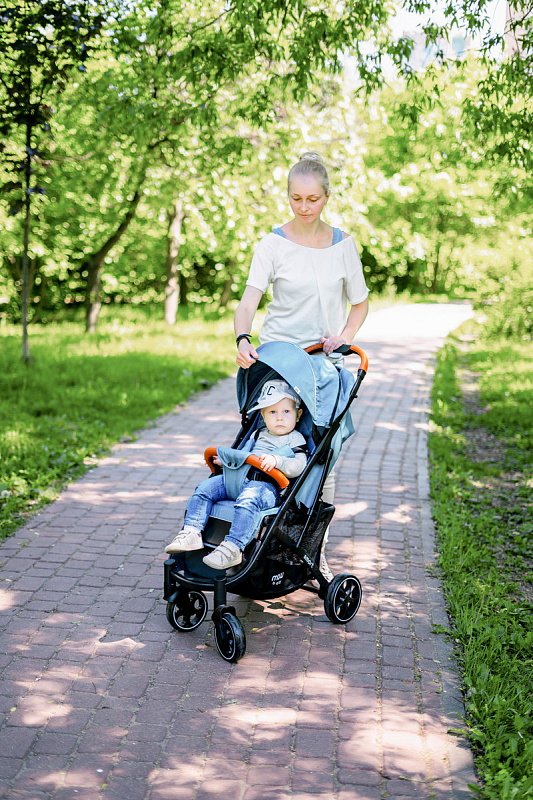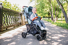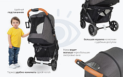 Коляска подходит для городских прогулок, а также удобна во время путешествий. Складывается и раскладывается одной рукой. Подножка отделана практичной экокожей, которую легко протирать от загрязнений.