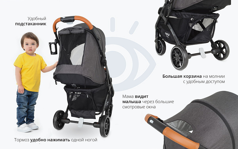 - колеса увеличенного диаметра покорят глубокие сугробы и небольшие камни, а малыш этого даже не почувствует