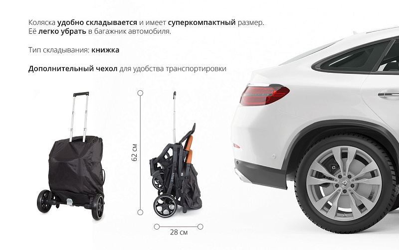 - сложенную коляску можно катить как чемодан за специальную телескопическую ручку