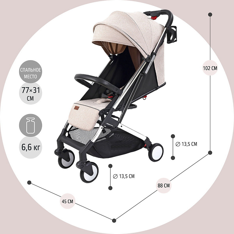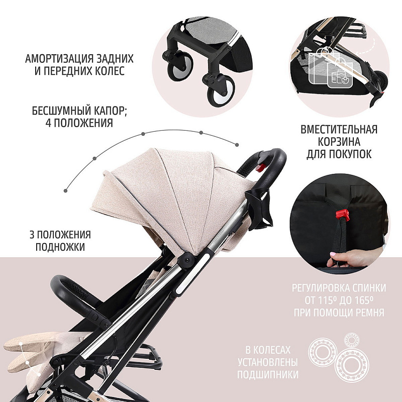 Детская прогулочная коляска Nuovita Anima Beige, Argento / Бежевый, Серебряный