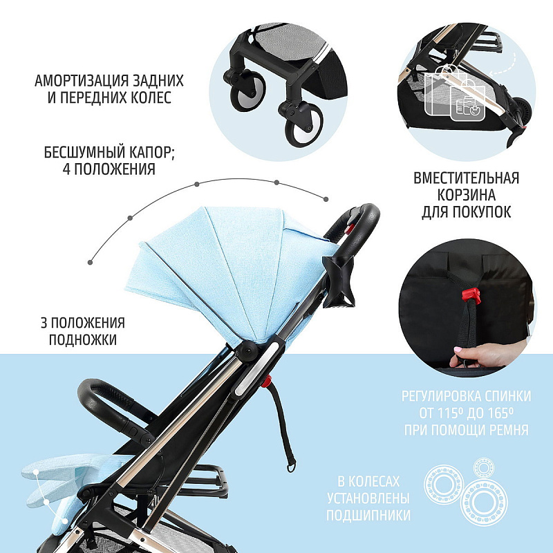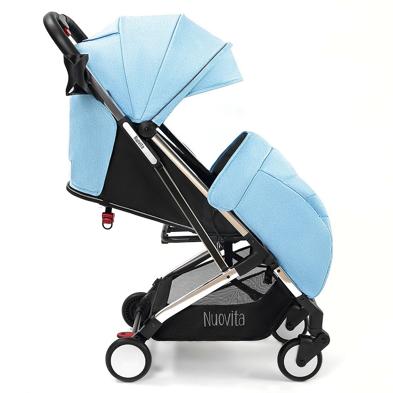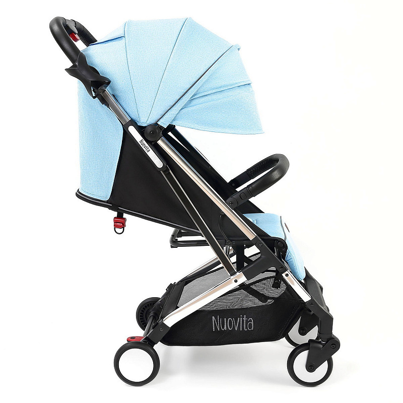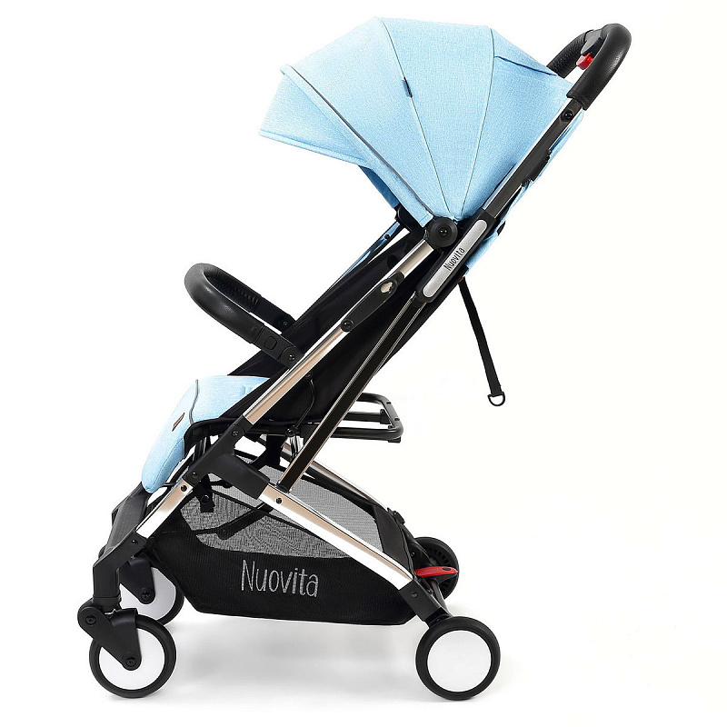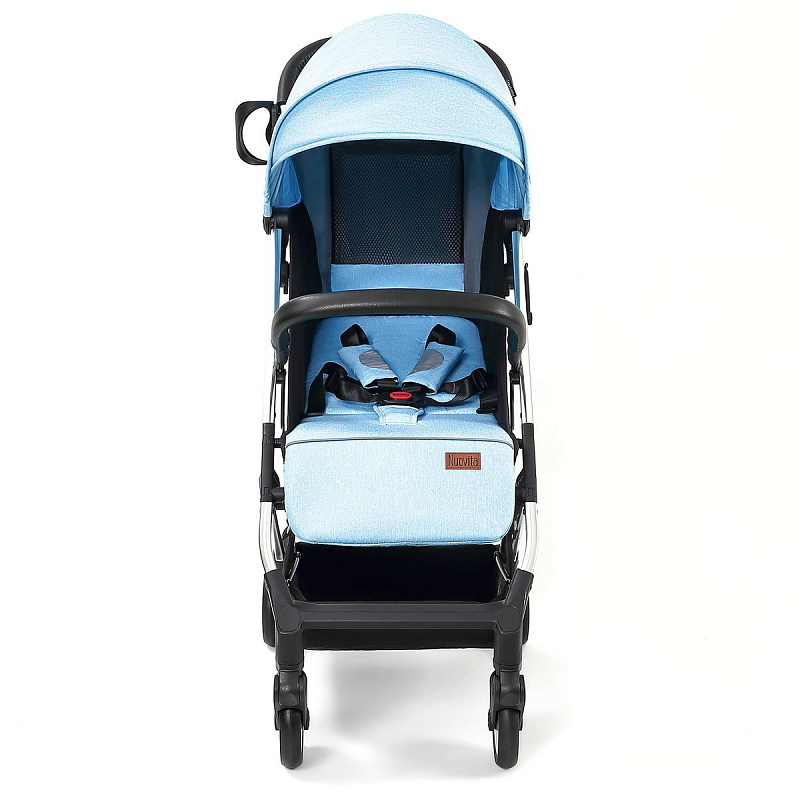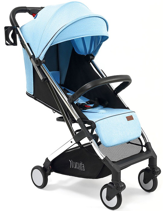 Легкая демисезонная прогулочная коляска Nuovita Anima.Подойдет для путешествий на самолете, поезде и повседневных прогулок, в том числе и в зимний сезон, поскольку сидение коляски способно вместить малыша, одетого в теплый комбинезон. Коляска легко и беспрепятственно проходит в любой лифт. Многопозиционная спинка способна откидываться из положения 115 градусов до уровня 165 градусов и в разложенном виде образует спальное место размером 77х31 см. Веерная подножка предполагает использование 3-х положений. Для того, чтобы ребенок не смог выскользнуть из коляски, в сиденье встроены пятиточечные ремни безопасности с мягкими накладками. Предусмотрен защитный откидной бампер с отделкой из экокожи, за который может держаться малыш. Родительская ручка также защищена накладкой из экокожи.