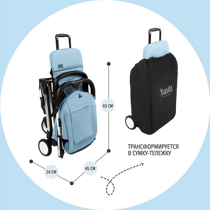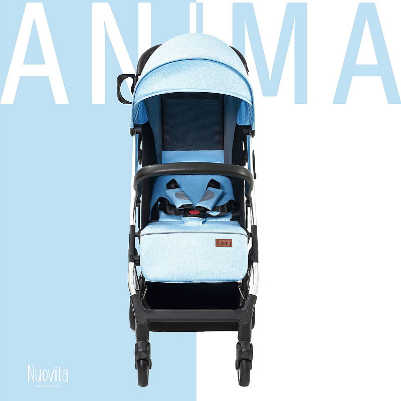 Детская прогулочная коляска Nuovita Anima Blu, Argento / Голубой, Серебряный