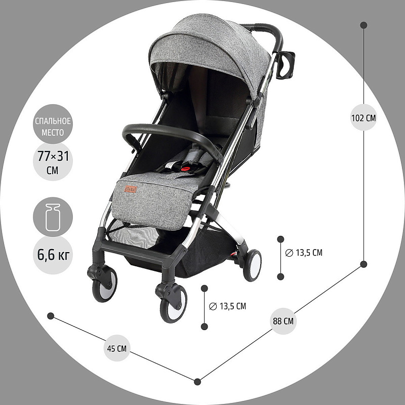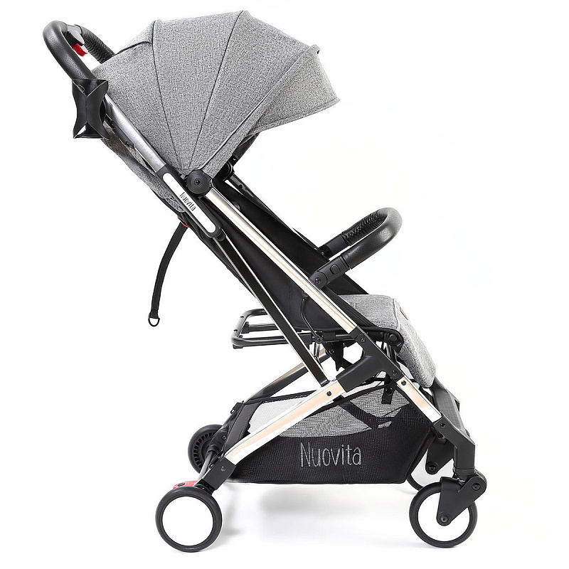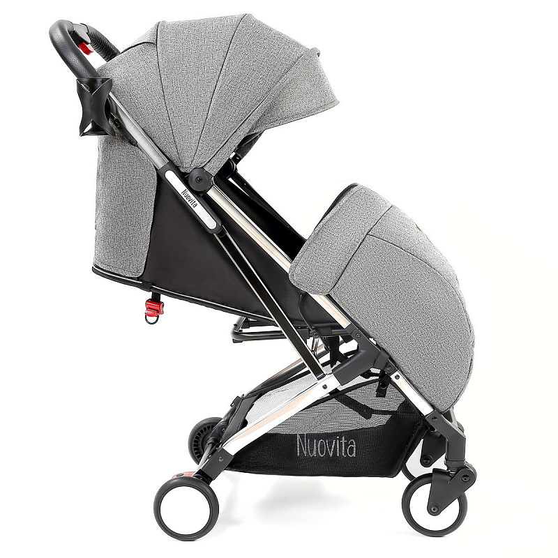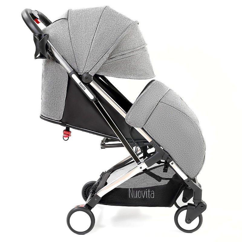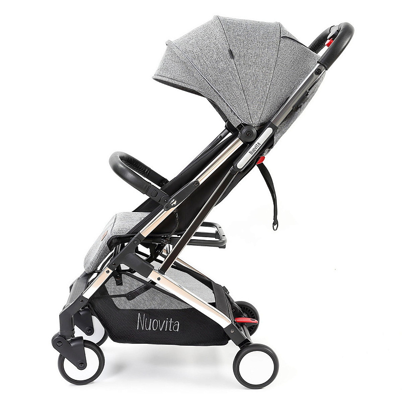 Легкая демисезонная прогулочная коляска Nuovita Anima.Подойдет для путешествий на самолете, поезде и повседневных прогулок, в том числе и в зимний сезон, поскольку сидение коляски способно вместить малыша, одетого в теплый комбинезон. Коляска легко и беспрепятственно проходит в любой лифт. Многопозиционная спинка способна откидываться из положения 115 градусов до уровня 165 градусов и в разложенном виде образует спальное место размером 77х31 см. Веерная подножка предполагает использование 3-х положений. Для того, чтобы ребенок не смог выскользнуть из коляски, в сиденье встроены пятиточечные ремни безопасности с мягкими накладками. Предусмотрен защитный откидной бампер с отделкой из экокожи, за который может держаться малыш. Родительская ручка также защищена накладкой из экокожи.