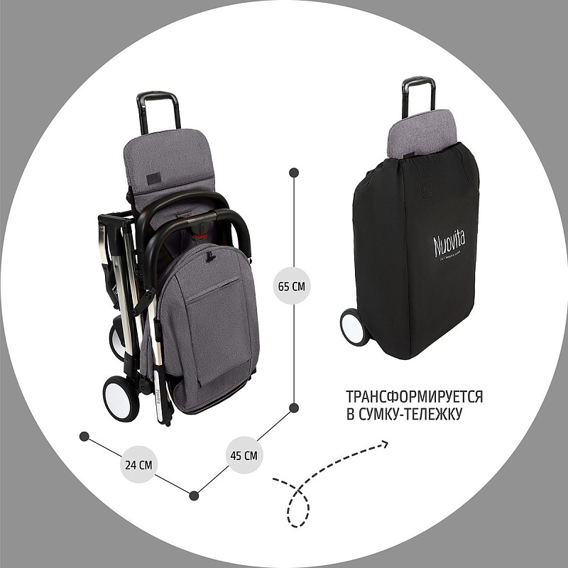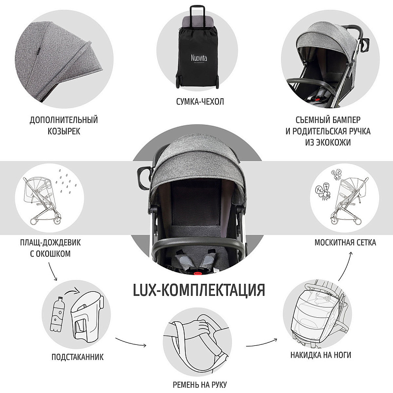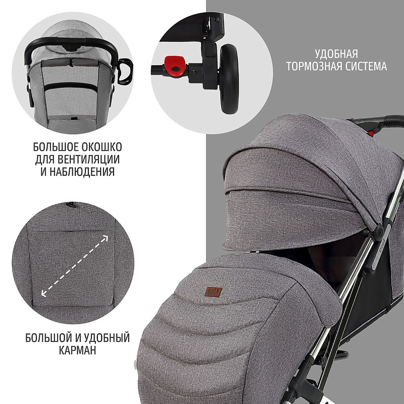 Детская прогулочная коляска Nuovita Anima Grigio, Argento / Серый, Серебряный