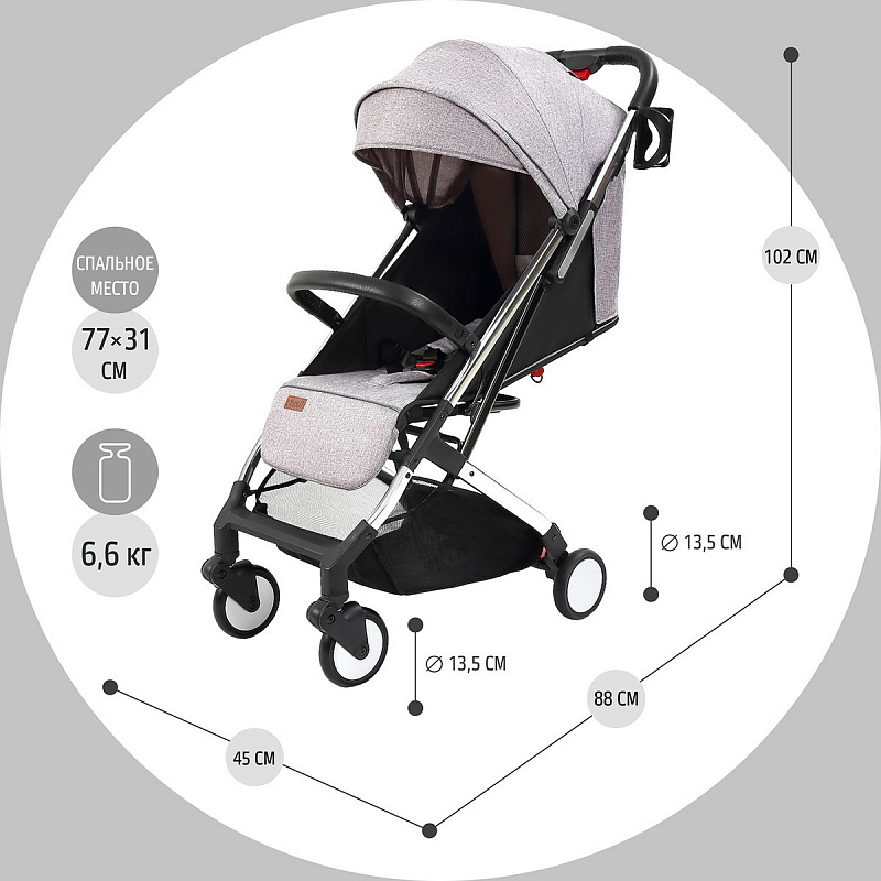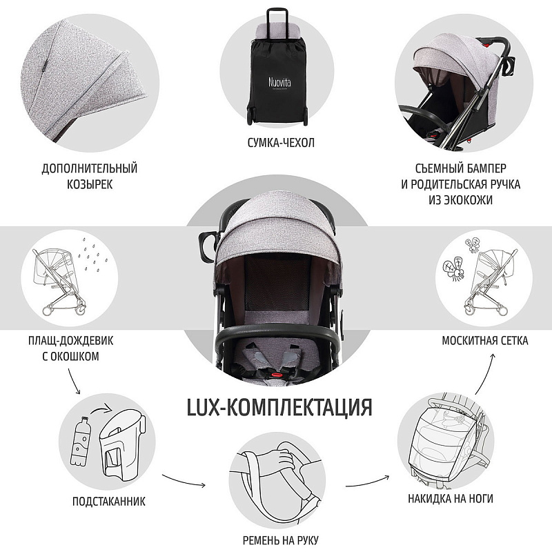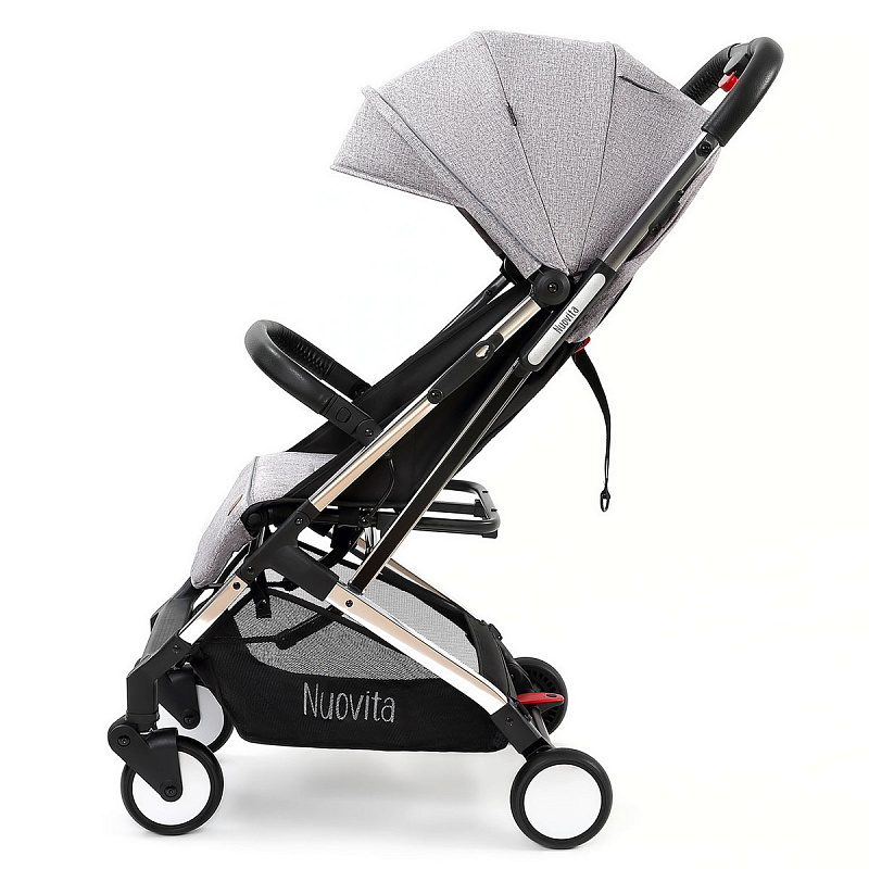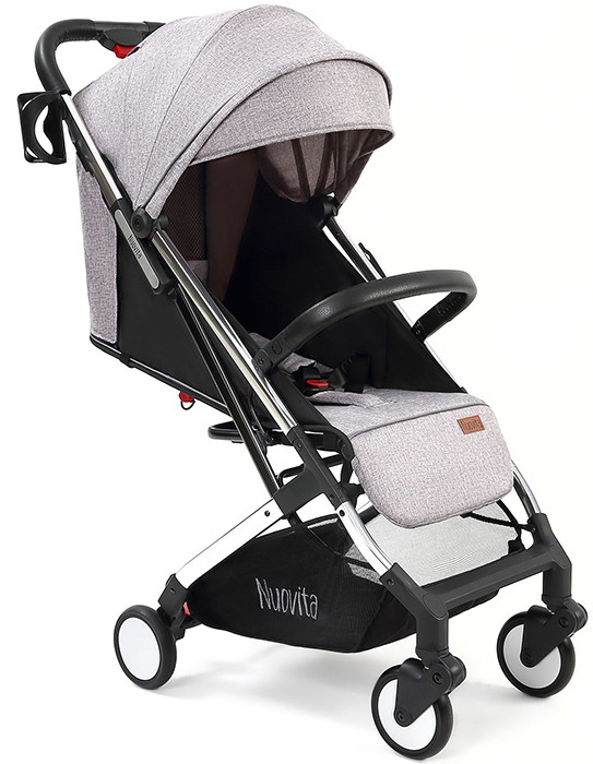 Легкая демисезонная прогулочная коляска Nuovita Anima.Подойдет для путешествий на самолете, поезде и повседневных прогулок, в том числе и в зимний сезон, поскольку сидение коляски способно вместить малыша, одетого в теплый комбинезон. Коляска легко и беспрепятственно проходит в любой лифт. Многопозиционная спинка способна откидываться из положения 115 градусов до уровня 165 градусов и в разложенном виде образует спальное место размером 77х31 см. Веерная подножка предполагает использование 3-х положений. Для того, чтобы ребенок не смог выскользнуть из коляски, в сиденье встроены пятиточечные ремни безопасности с мягкими накладками. Предусмотрен защитный откидной бампер с отделкой из экокожи, за который может держаться малыш. Родительская ручка также защищена накладкой из экокожи.