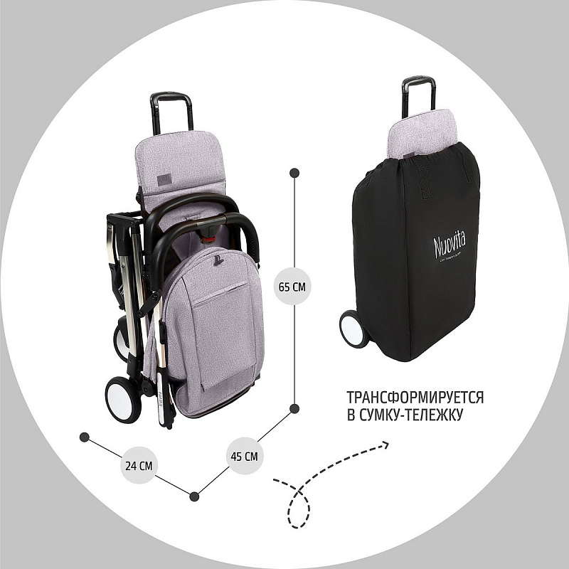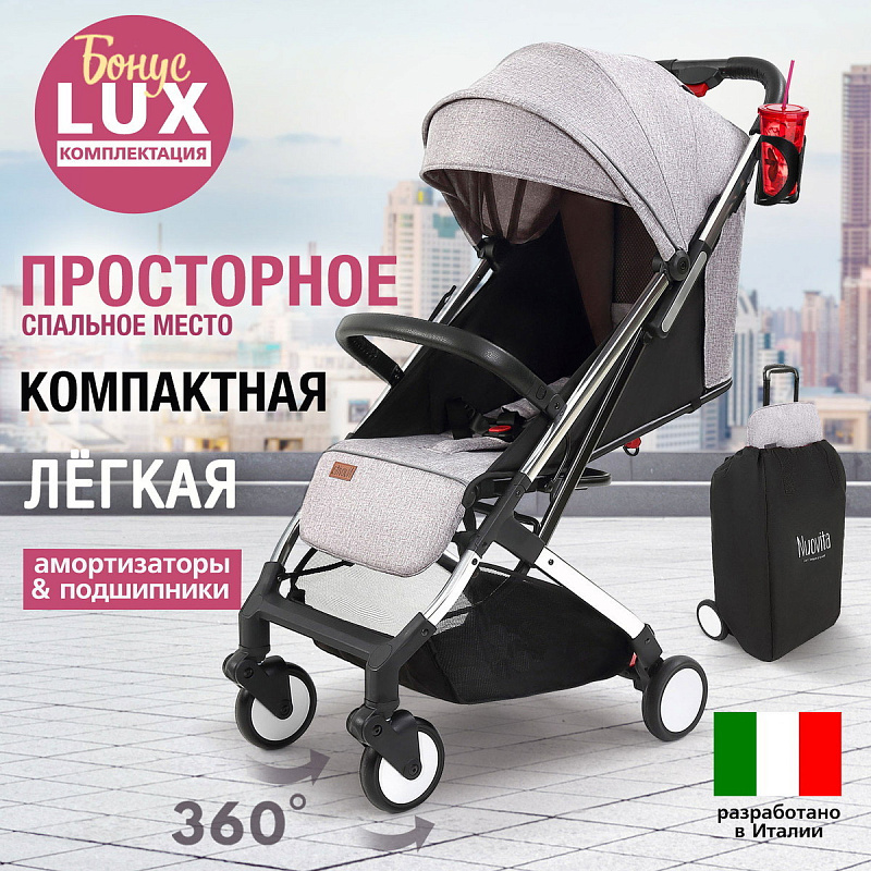 Детская прогулочная коляска Nuovita Anima Grigio chiaro, Argento / Серый светлый, Серебряный