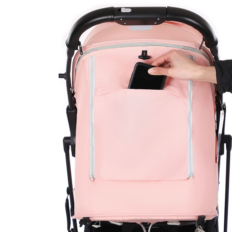 - Коляска выполнена из водонепроницаемой ткани с УФ-защитой