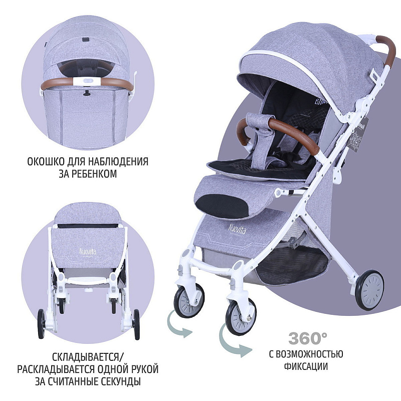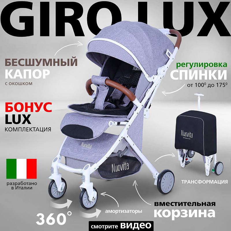 Детская прогулочная коляска Nuovita Giro Lux Grigio, Bianco / Серый, Белый