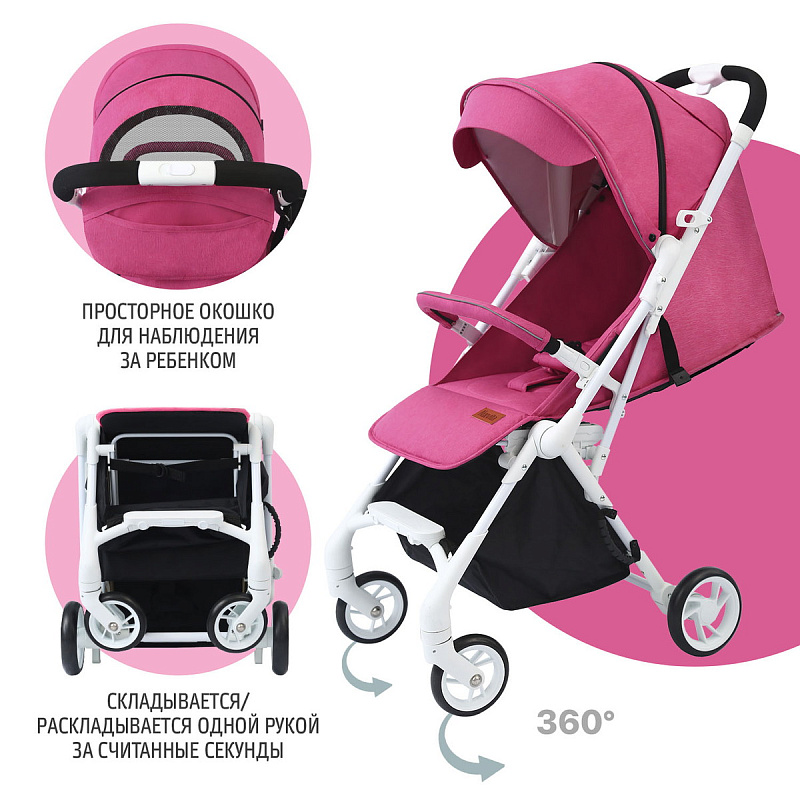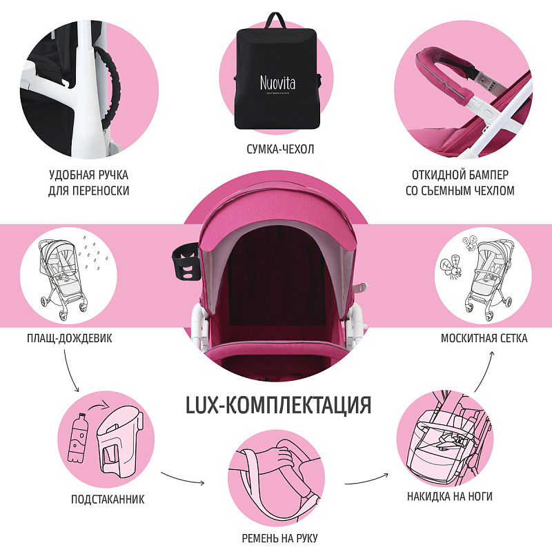 Детская прогулочная коляска Nuovita Sfera Розовый, Белый
