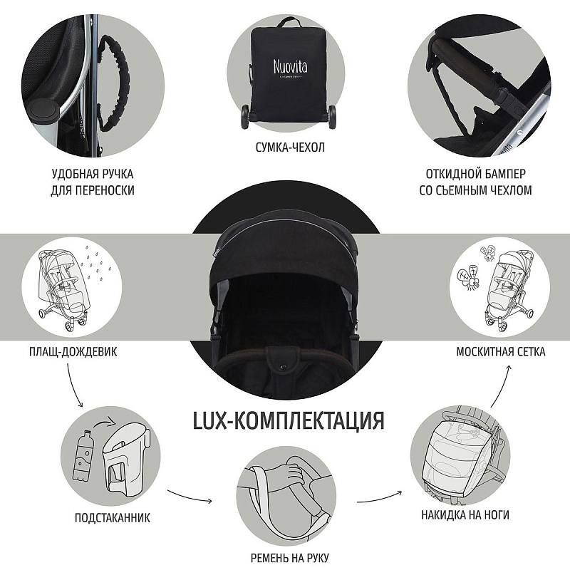 Детская прогулочная коляска Nuovita Snello Черный бархат