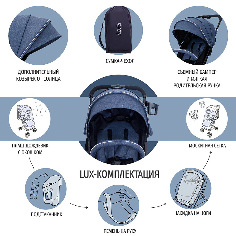 Детская прогулочная коляска Nuovita Vero Denim / Джинсовый