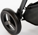 Передние поворотные колеса с фиксацией. Оснащены системой «антишок». Система антишок – сложный механизм, обеспечивающий безупречную амортизацию и защищающий ребенка от резких толчков и последующего просыпания. Например, при столкновении коляски с бордюром, она мягко оттолкнется от него и резкого торможения с ощутимым ударом не будет.