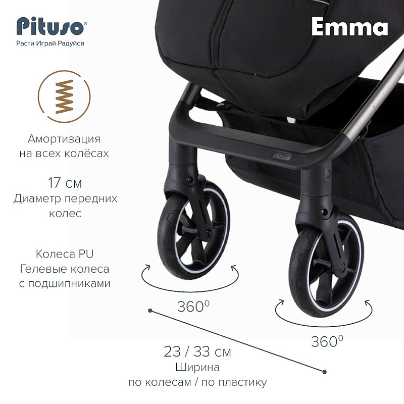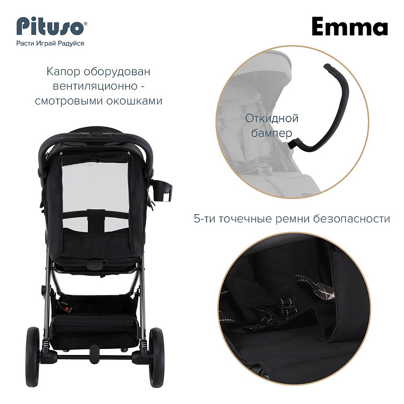 Детская прогулочная коляска Pituso Emma Black/Черный