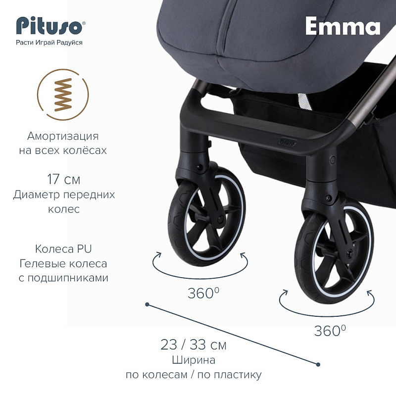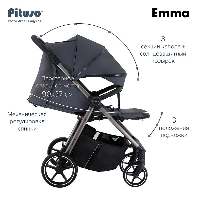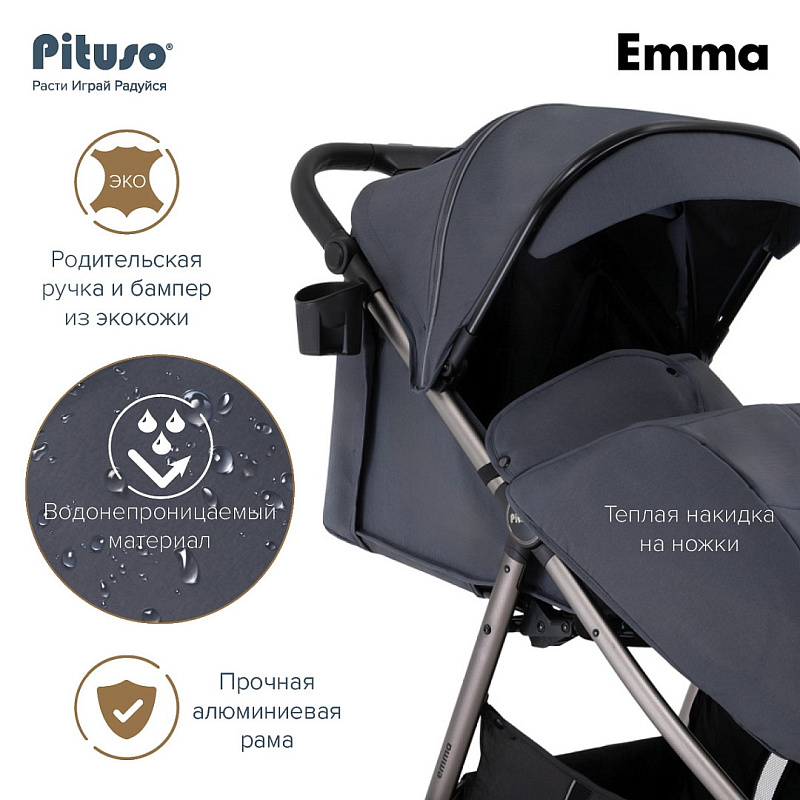 Детская прогулочная коляска Pituso Emma Graphite/Графит
