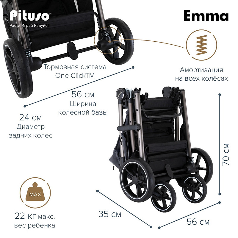 Новинка 2024 года — стильная и удобная прогулочная коляска Pituso Emma Она лёгкая и манёвренная, с комфортным сиденьем, регулируемой спинкой и ручкой. Это обеспечивает максимальный комфорт для родителей и ребёнка во время прогулок.