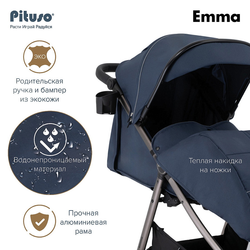 Детская прогулочная коляска Pituso Emma Navy Blue/Темно-Синий
