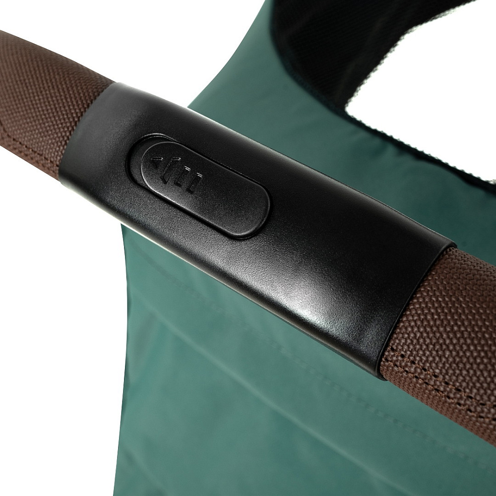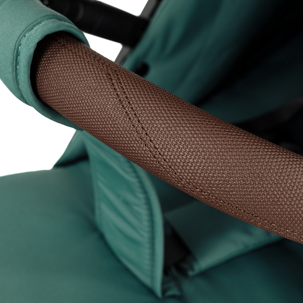 Прочная ручка из эко-кожи приятна на ощупь. Удобная конструкция помогает легко складывать коляску одним нажатием кнопки.