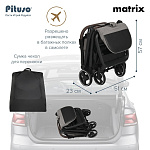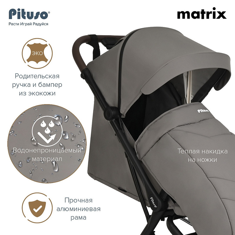 Ультра легкая и компактная коляска Pituso Matrix поможет вам гулять плавно и быстро - это идеальная коляска для тех, кто любит движение и маневренность. Продвинутые инженерные решения позволяют вам пользоваться коляской с легкостью и удовольствием. У заядлых путешественников и энтузиастов будет возможность упаковать в дорожную сумку для удобной транспортировки или хранения.