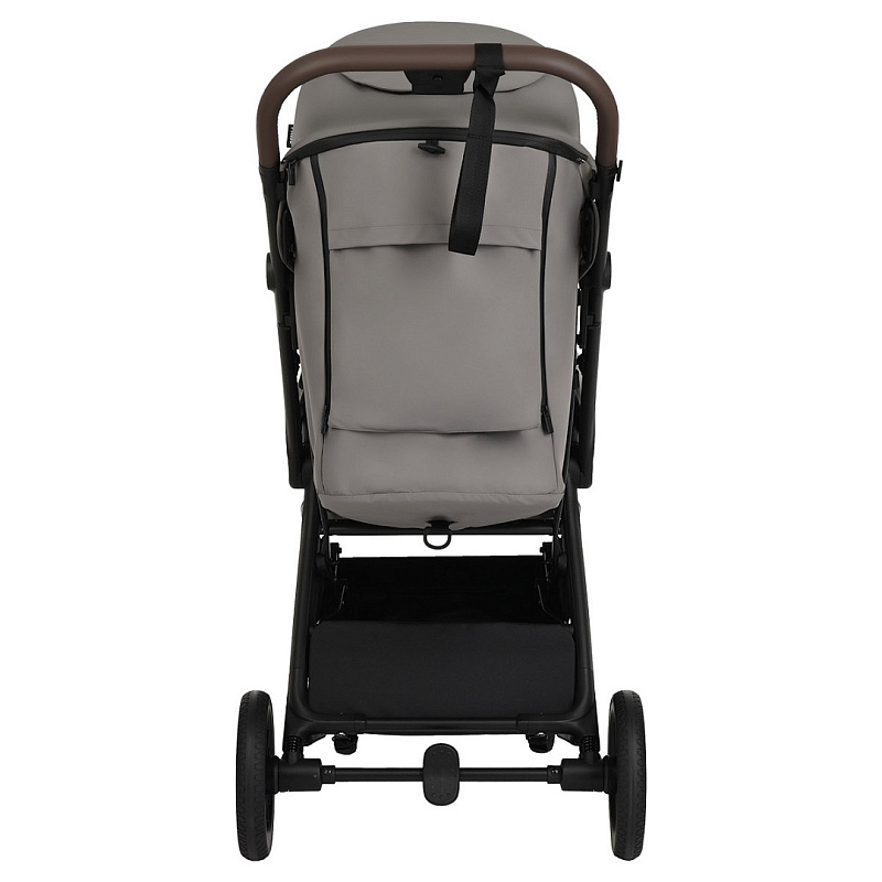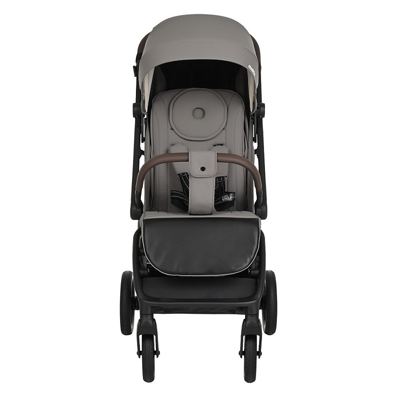 Прочная ручка из эко-кожи приятна на ощупь. Удобная конструкция помогает легко складывать коляску одним нажатием кнопки.