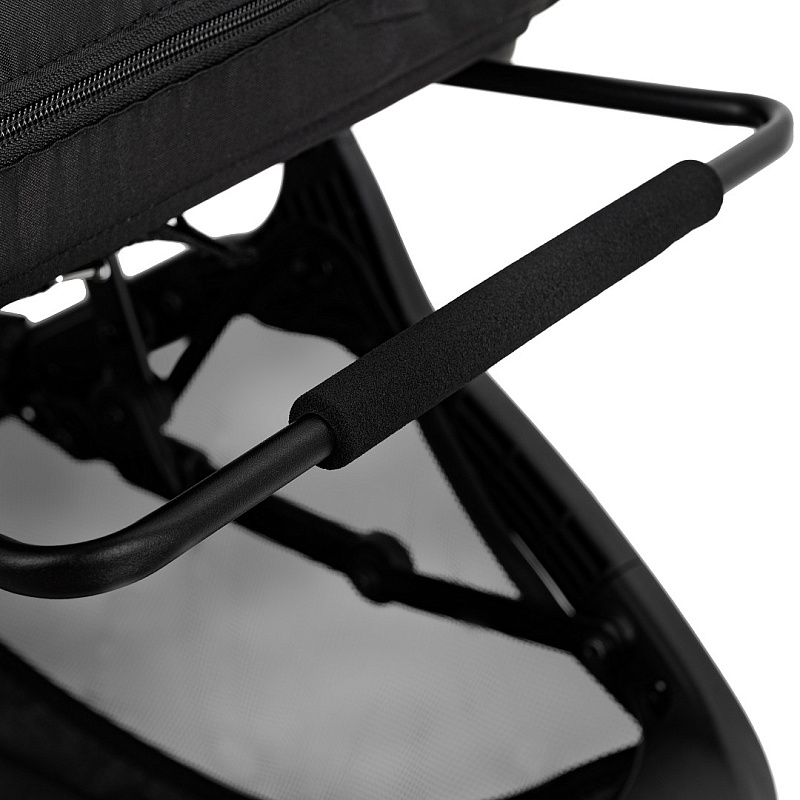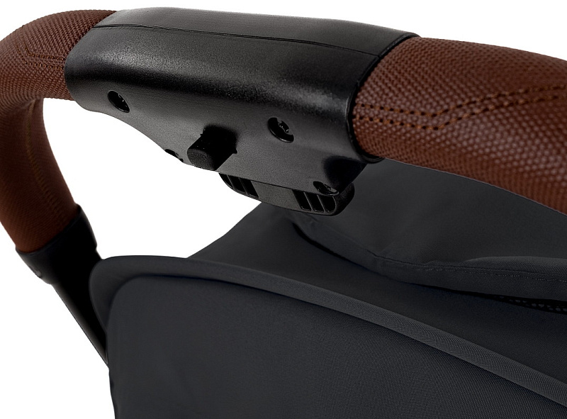 Прочная ручка из эко-кожи приятна на ощупь. Удобная конструкция помогает легко складывать коляску одним нажатием кнопки.