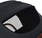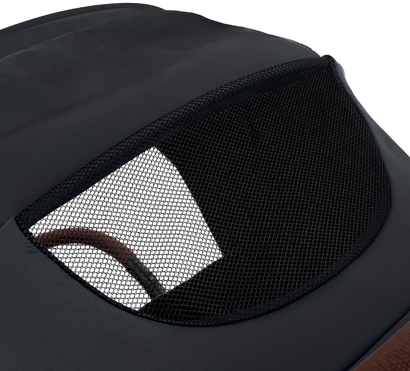 Глубокий капюшон с дополнительной секцией закроет ребёнка от солнца или дождя. Также присутствует вентиляционное окошко и большое смотровое окно в задней части коляски.