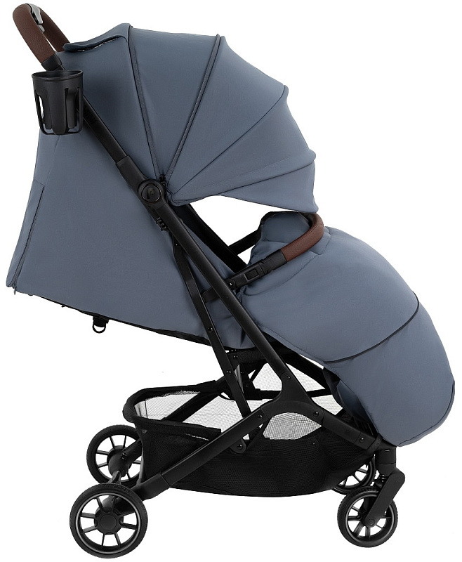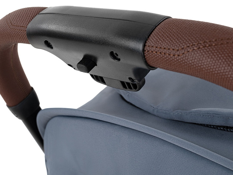 Прочная ручка из эко-кожи приятна на ощупь. Удобная конструкция помогает легко складывать коляску одним нажатием кнопки.