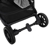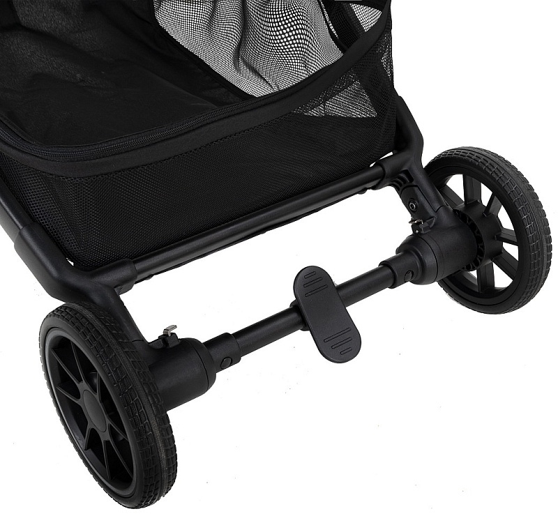 Передние колеса легко вращаются вокруг своей оси под углом 360 градусов. Они обеспечивают шасси дополнительную маневренность, значительно облегчая родителям поездку между полками магазинов.