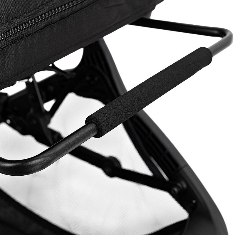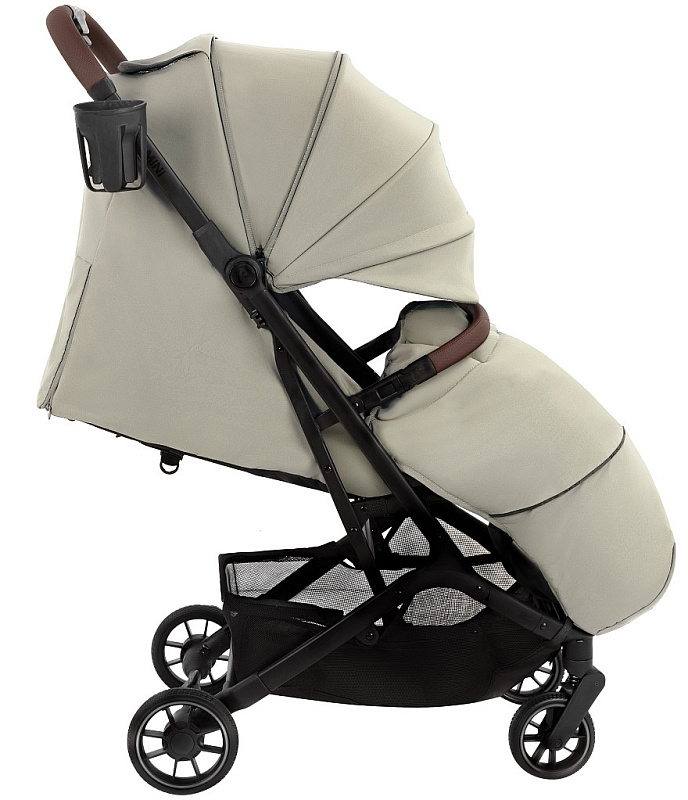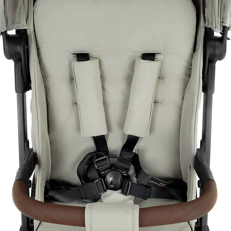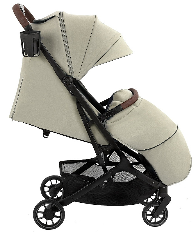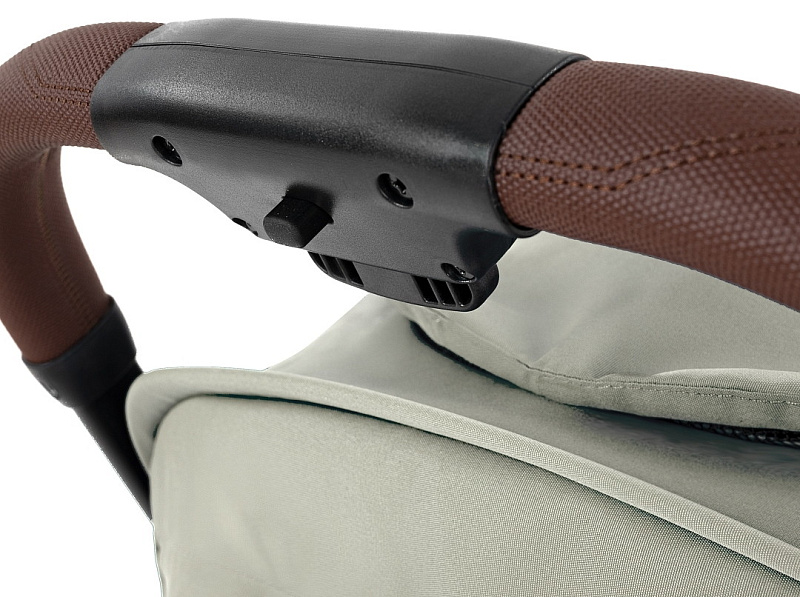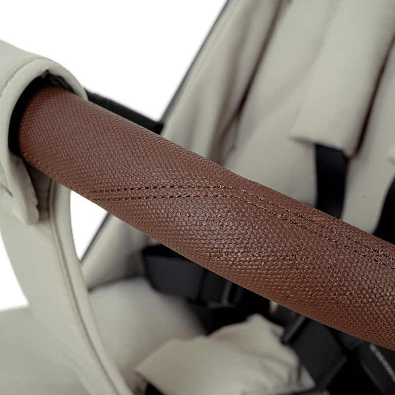 Прочная ручка из эко-кожи приятна на ощупь. Удобная конструкция помогает легко складывать коляску одним нажатием кнопки.